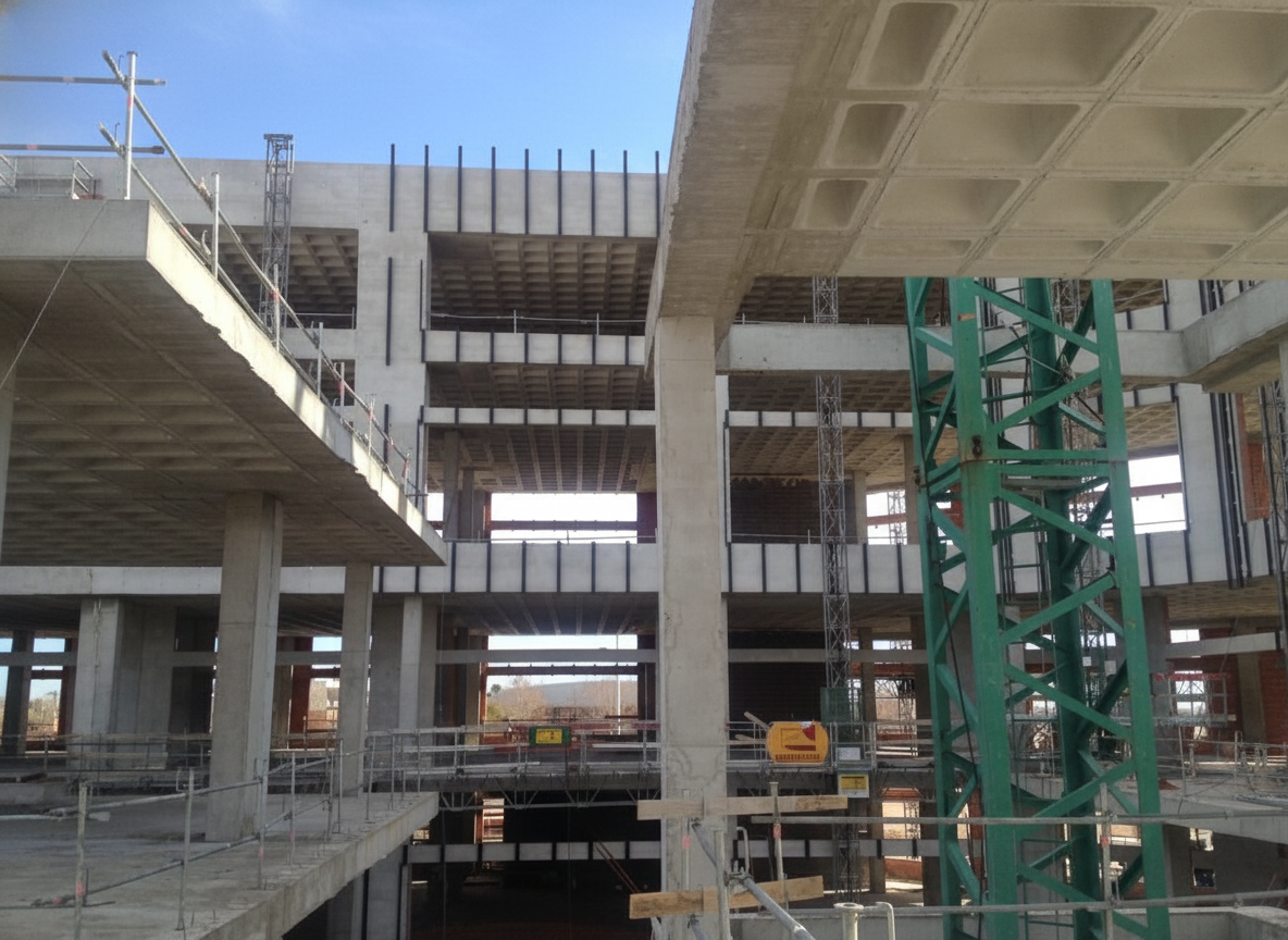 La concentración excepcional de edificabilidad en la parcela, unida a los requerimientos propios de un centro comercial —altas sobrecargas de uso, grandes luces sin pilares, integración de escaleras mecánicas y plantas flexibles— exigía una solución estructural optimizada para:
