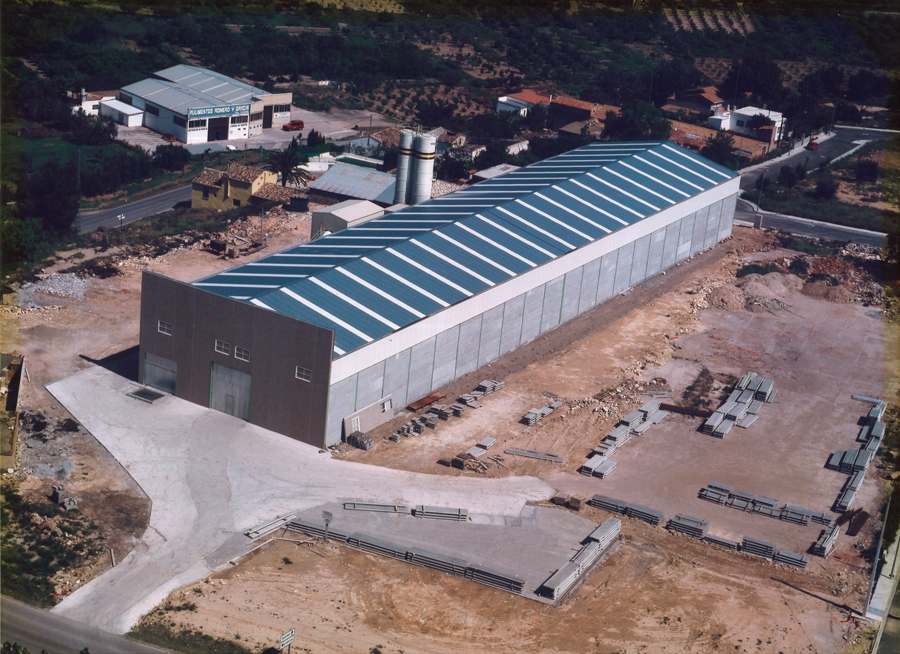 Con este concepto de empresa, nos desarrollamos poco a poco hasta que en el año 2000 construimos la fábrica nueva en Segorbe, a donde nos trasladamos para fabricar, además de viguetas, otro tipo de prefabricados de hormigón como muros bilama tipo sándwich, prelosas de forjado, paneles de cerramiento para naves y construcciones prefabricadas industrializadas, etc.