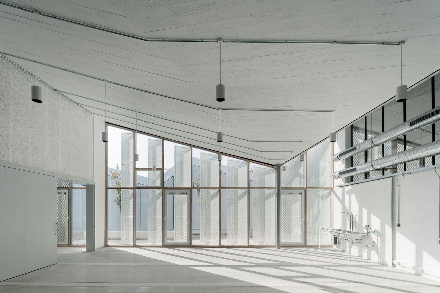 El proyecto se desarrolló sobre una superficie construida aproximada de 5.767 m², incorporando losas quebradas en las zonas destinadas a talleres y espacios docentes singulares. La propuesta arquitectónica apostó por amplitud, continuidad espacial y relaciones visuales entre áreas, favoreciendo la interacción y la actividad creativa. TECOPAL colaboró en la definición de la solución estructural mediante forjados de losa aligerada, adaptada a las exigencias del proyecto: grandes luces, espacios diáfanos y control de peso propio. La estructura se resolvió con sistemas de hormigón armado compatibles con el acabado visto requerido, manteniendo la coherencia técnica y arquitectónica del conjunto.