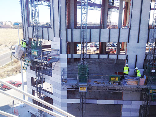 Optimización estructural de un edificio con 9 forjados y dos sótanos, sustituyendo el reticular previsto por losas aligeradas Unidome para ganar altura libre y acelerar la obra. La solución permitió usar los forjados de sótano como losa vista (R-180) y reducir materiales en hormigón y acero.